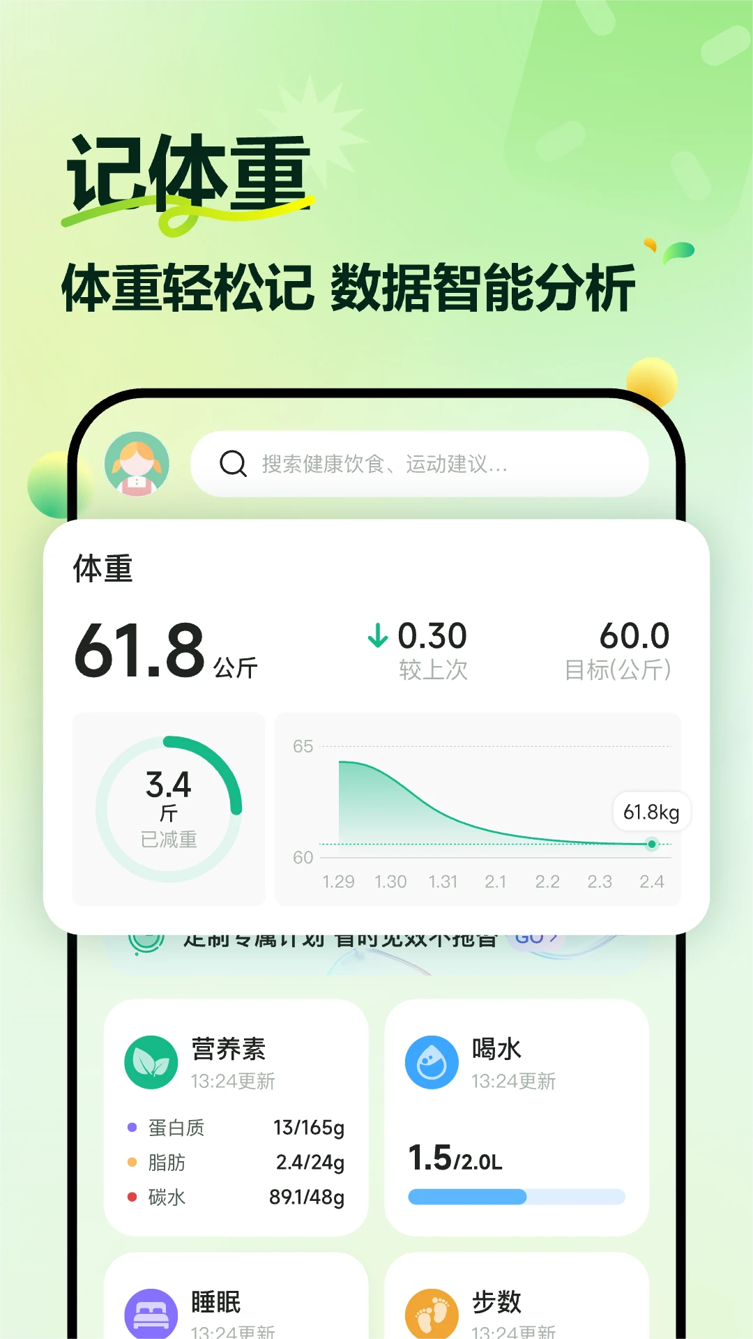 A:无需注册和登录,打开即可直接使用,所有的体重、饮食、打卡数据都会在本地永久备份,搭配设备使用也无需额外绑定账号。