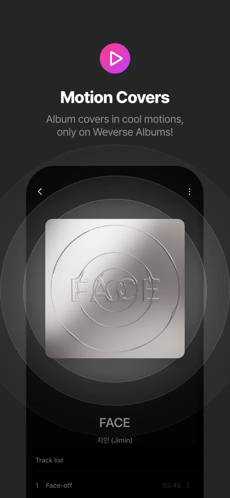 weversealbums官方版最新版是个专为防弹少年团粉丝打造的官方平台软件,weversealbums用户可在线购买Weverse专辑,并直接下载、播放最新歌曲。应用会第一时间推送新专辑资讯与动态,weversealbums支持扫码收藏已购专辑,方便粉丝系统管理与回顾藏品,是追星必备的便捷工具。