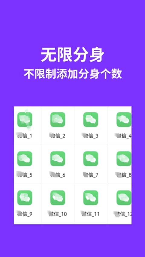 1、可无限制地添加应用分身,满足用户对多个账号同时在线的需求。