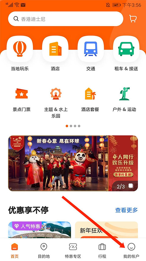 1、打开客路旅行国际版,选择右下方“我的账户”图标,