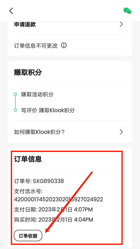 3、进入订单界面,往下滑动,在“订单信息”栏目选择“订单收据”,