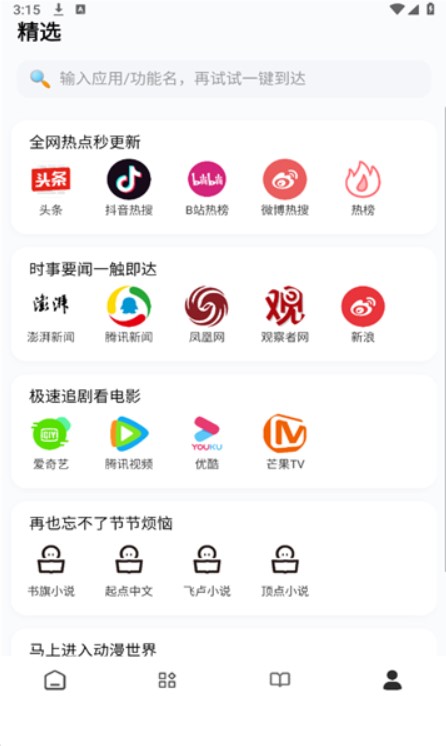 3、热门应用,对现在热门的应用一个方便展示,以便用户一触即达。