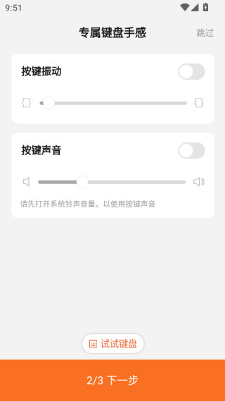 3、在专属键盘手感界面,设置好键盘振动和键盘声音。