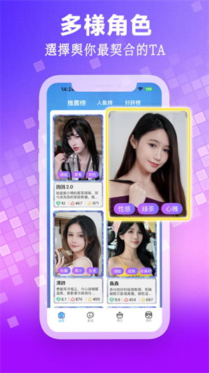 ① 角色库规模与跨度偏大,用户可以在温柔、傲娇、冷感等取向间快速切换,降低“聊久了变同一个人”的乏味感。
