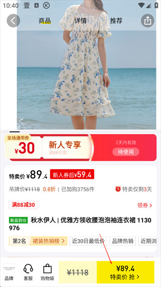 3、挑选你看顺眼的,点击特卖价抢