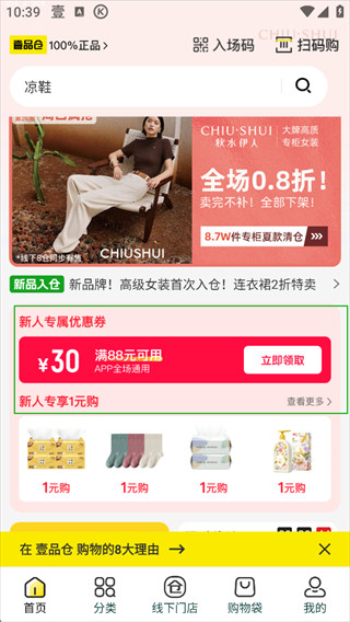 1、新人注册壹品仓先领取专属福利优惠卷