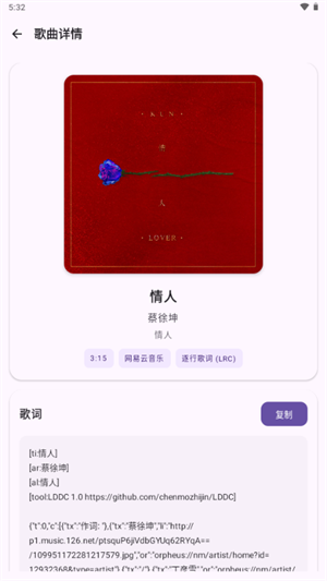4、多音乐平台歌词检索:可搜索QQ音乐、酷狗音乐、网易云音乐的单曲、专辑及歌单内容,同时支持从Lrclib获取歌词资源。