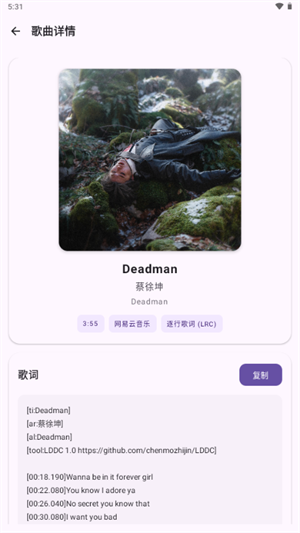 这软件支持兼容多个不同的音乐平台,用户在其中上传音乐后,即可获取对应的歌词内容。