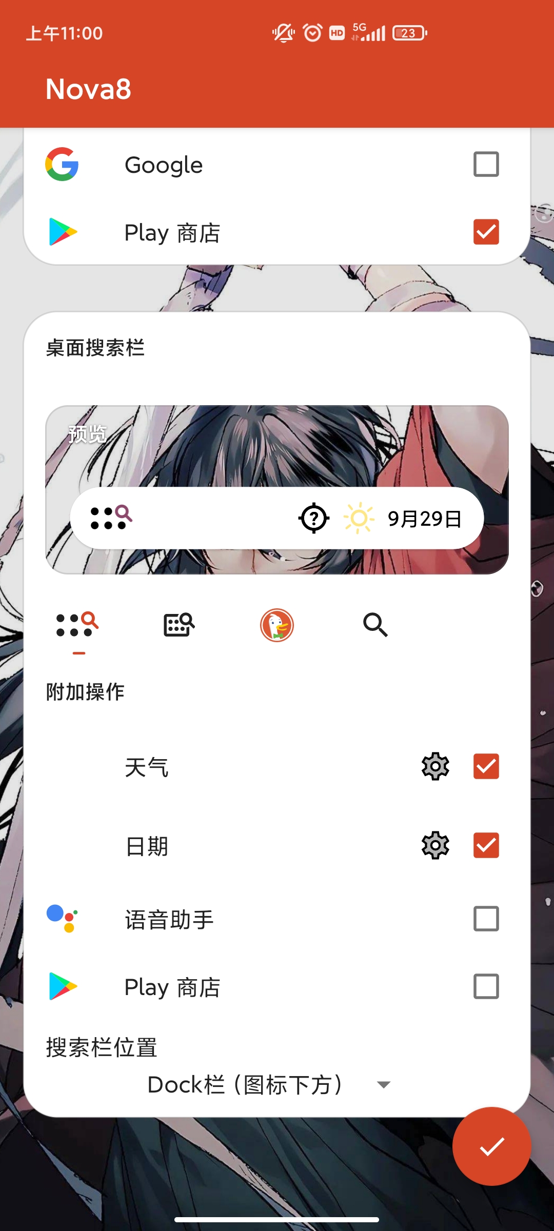 4、最后就是,其他小组件的添加,完成之后就可以点击右下角的“√”,即可开始应用启用nova启动器;