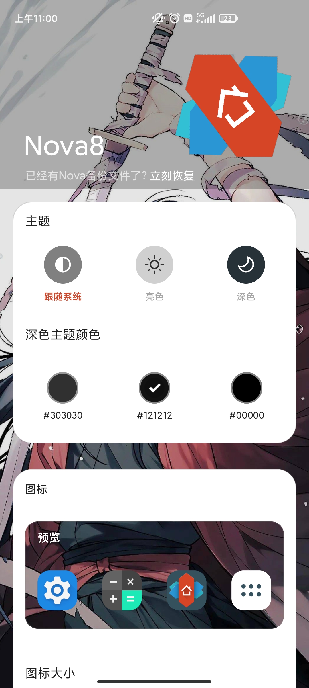 1、进入novalauncher中文版首页,即可开始您的桌面设置,此页面是设置您主页面色系,根据自己需要进行设置;