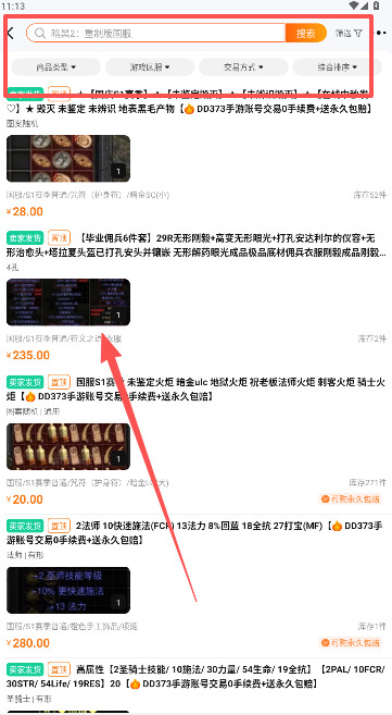 5、筛选交易类型,点击自己比较感兴趣的游戏账号详情,进入界面中。