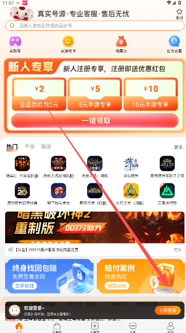 1、点立即登录dd373交易平台,输入账号密码,或是快捷验证码注册进入。