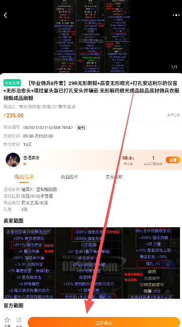 6、觉得你所查看的游戏账号信息,符合你的实际需求,就点击立即购买。