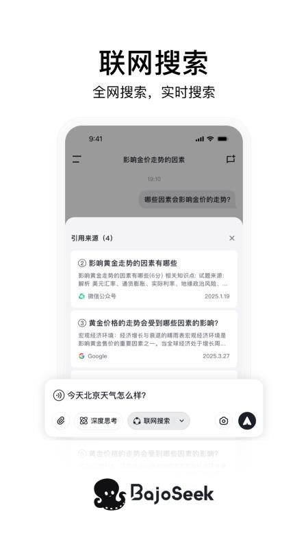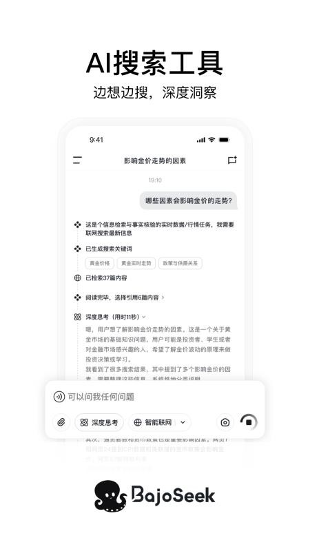 BajoSeek软件提供了线上的AI搜索,方便用户随时提问问题,更好的进行AI对话互动,实时搜索。