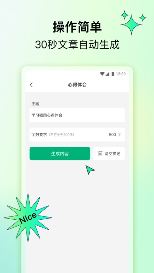 3. 生成内容:点击“生成内容”按钮,等待片刻,AI将自动生成符合需求的文章或文案。