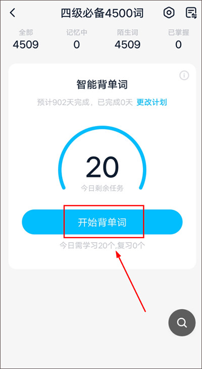 4、设定完成后,点击【开始背单词】即可开启自己的每日学习计划。