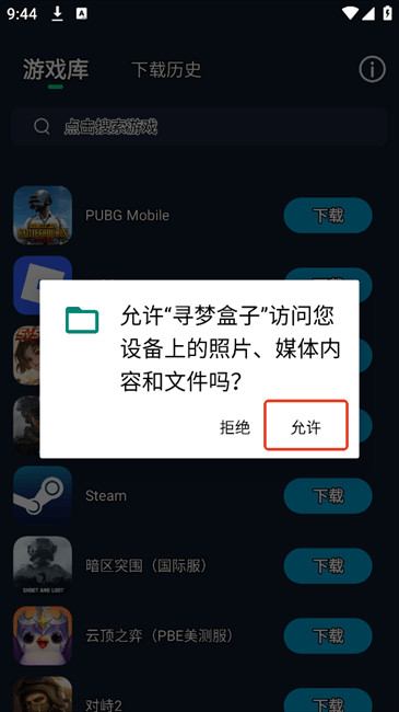 2.找到喜欢的游戏后点击右侧下载,如是初次使用需要先授予权限。