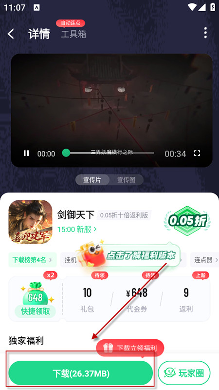 2、找到心仪的游戏后,可直接在平台内了解游戏详情、查看开服时间,点击下载安装并开始游戏,享受平台提供的折扣和福利。
