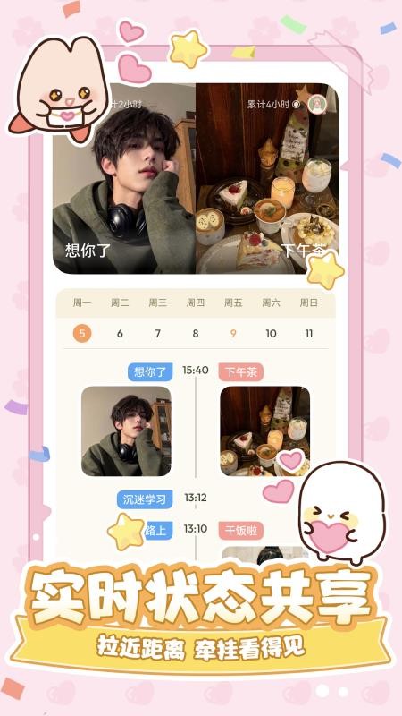 支持情侣间的实时动态分享,随时报备日常、传递心意,让彼此的生活拥有满满的参与感。