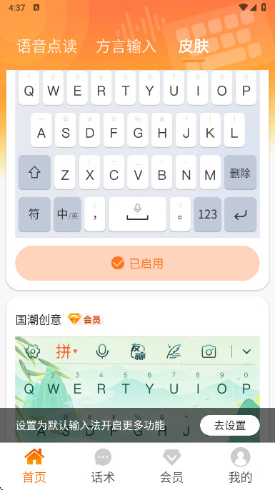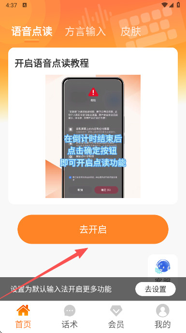1、在本站下载安装智能点读输入法手机版打开来到首页,您可以看到语音点读功能,可以直接去开启
