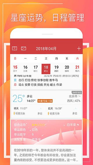 1、财童万年历app界面简洁,界面非常的简洁美观,各种内容一目了然,阅读非常方便。