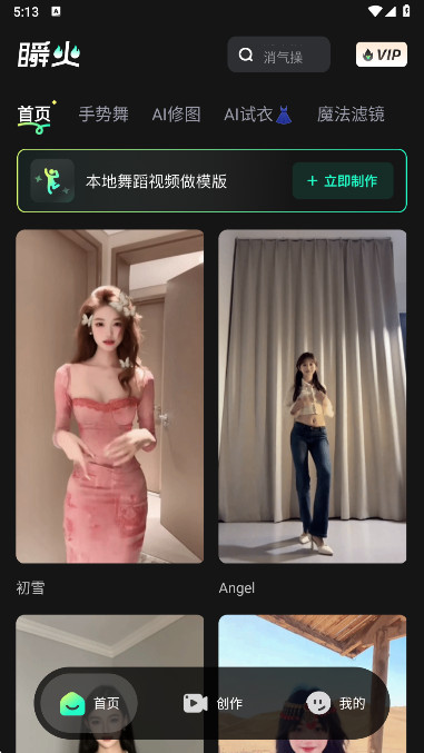 1、下载安装打开瞬火,来到首页您可以获取到舞蹈视频