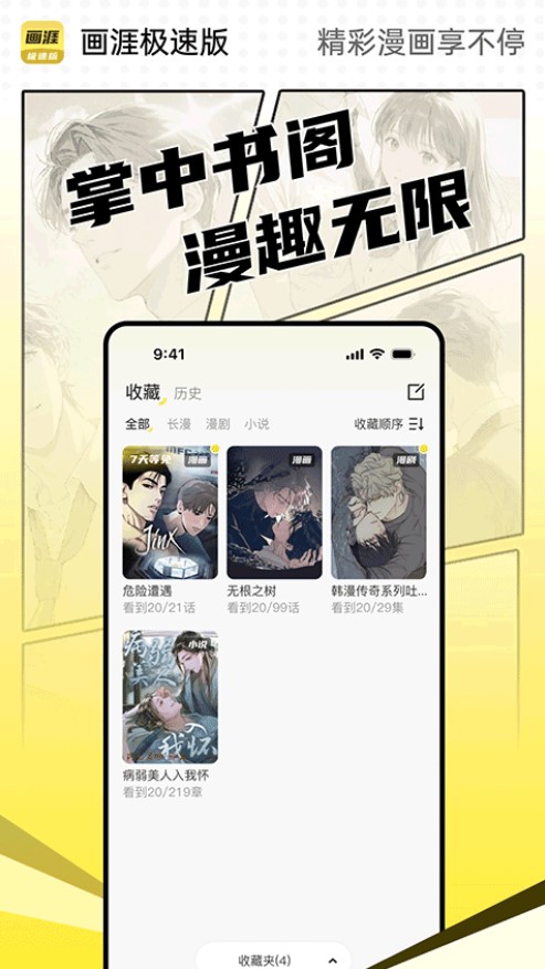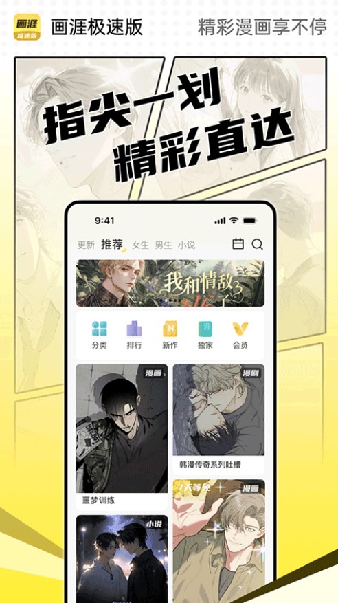 画涯极速版是漫画和小说阅读软件,收录各种题材的漫画和小说。画涯极速版支持高清阅读,每天更新新内容,还能收藏、评论和分享。画涯极速版应用还提供影视动漫解说,让用户边看漫画边了解热门影视。