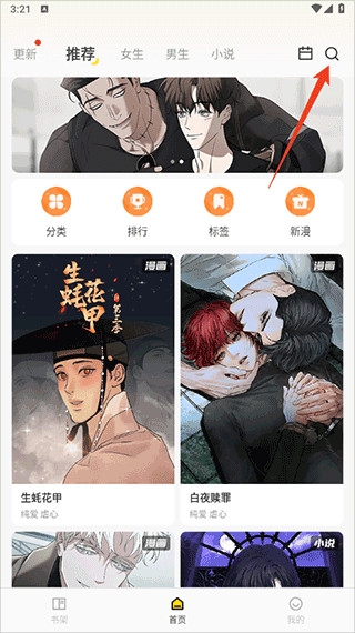 1、进入画涯极速版首页后点击右上角的搜索按钮。