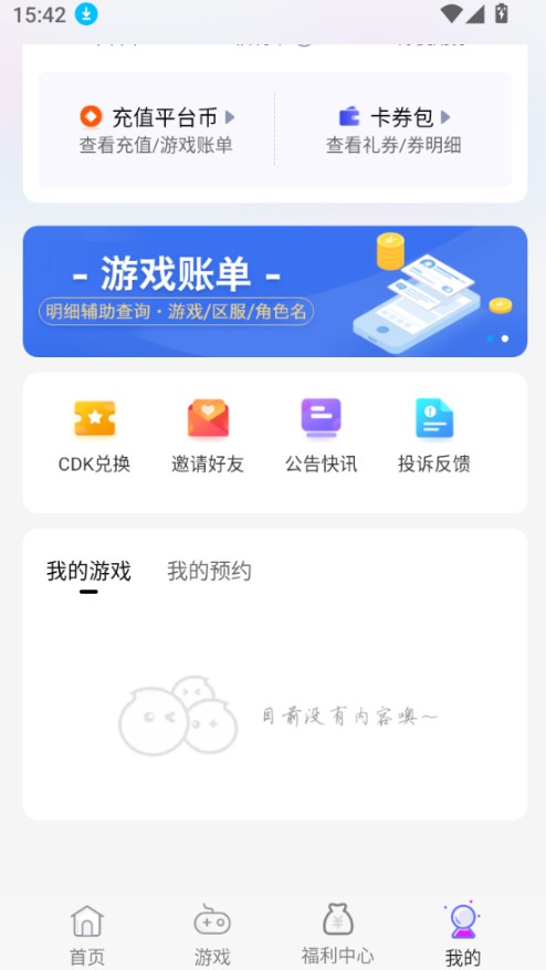 还可以让玩家掌握自己在平台的游戏账单,你可以了解自己的游戏充值数据;