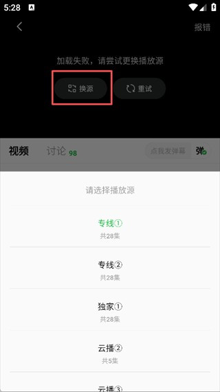 2、搜索成功后,点击即可播放,如果显示加载失败,我们就需要点击换源尝试更换播放源