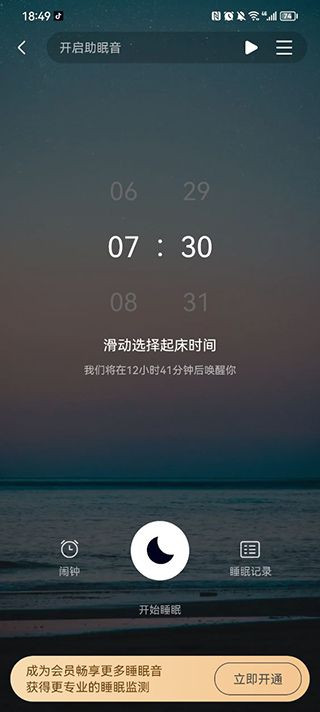 2、设置好起床时间,点击开始睡眠。