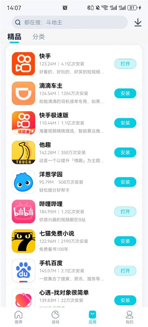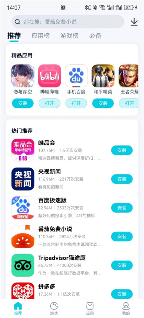2、也可以在首页根据不同排行榜类型中下载感兴趣的应用以及游戏;