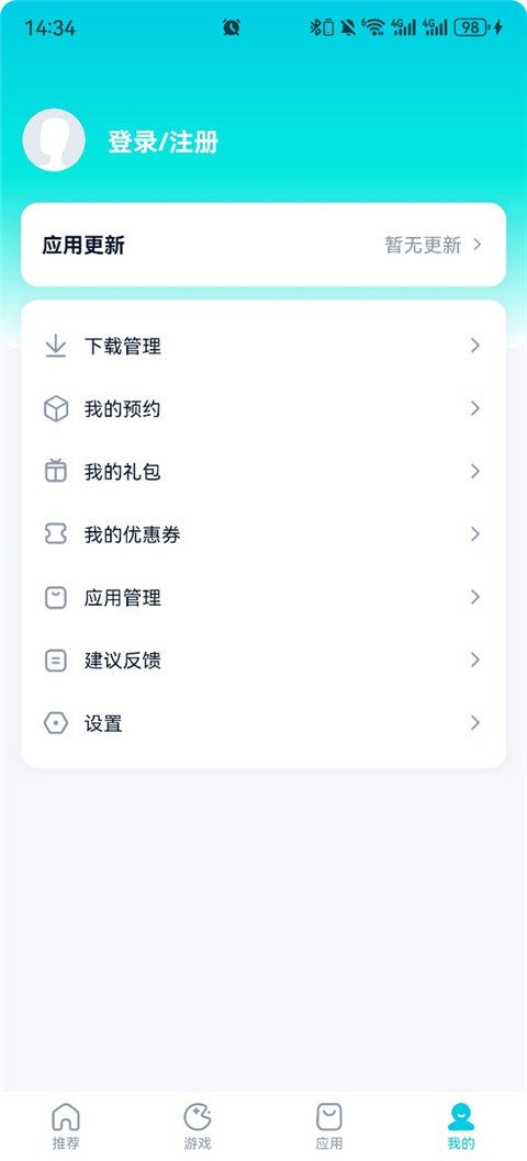 1、我们先来到酷派应用商店主页,在底部找到【我的】,点击进入个人页面。