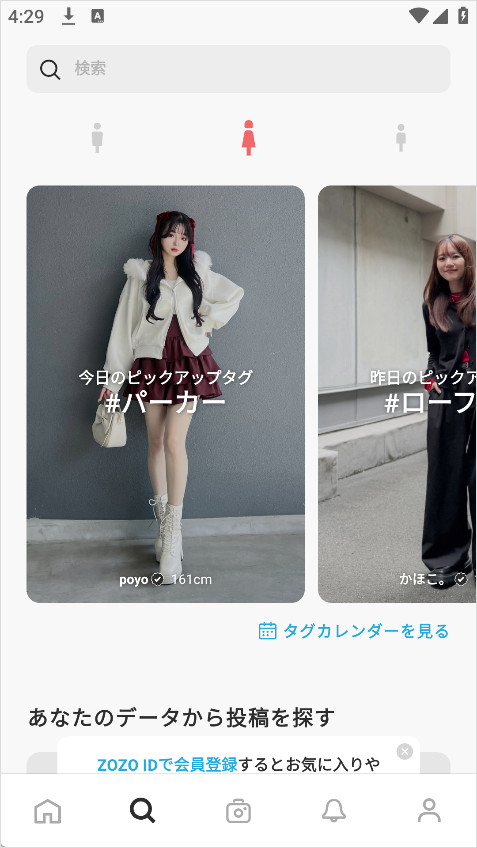 4、ZOZOTOWN最新搭配参考的服饰购买,WEAR将实时通知您。