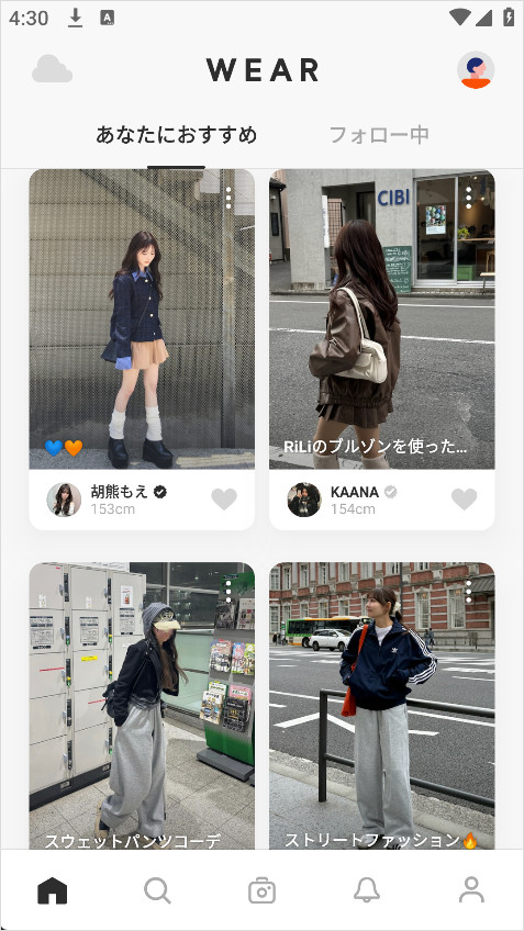打开WEAR App首页,你就能看到来自全球时尚达人的最新穿搭。