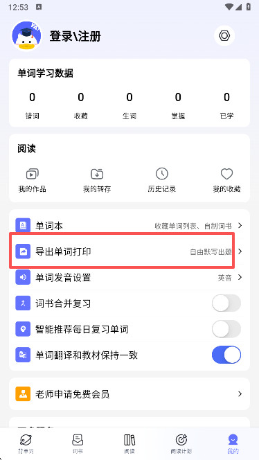 1、我们在天才鸭单词首页点击我的,进入个人中心