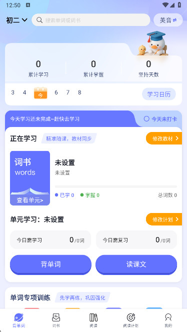 1、在本站下载安装打开天才鸭单词,进入后选择您的学习年级