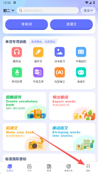 2、进入首页后就可以看到背单词功能了