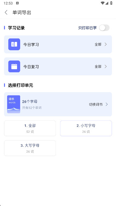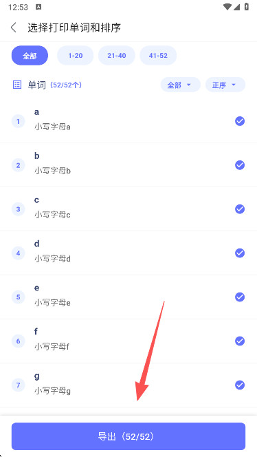2、然后选出导出单词打印