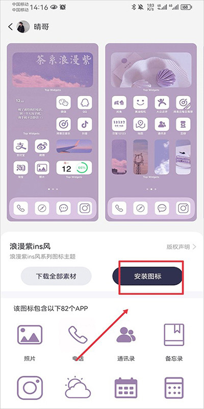3、【一键安装整套图标】