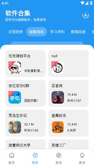 安忆软件库客户端是软件资源库应用,汇集了丰富的工具、软件和游戏资源,用户可以在这里轻松下载和使用。安忆软件库客户端平台资源种类多样,包括安卓软件、电脑软件等内容,并会持续更新最新版本。安忆软件库客户端应用还会根据用户的下载习惯推荐相关资源,同时界面简洁,没有广告干扰,使用更加方便。
