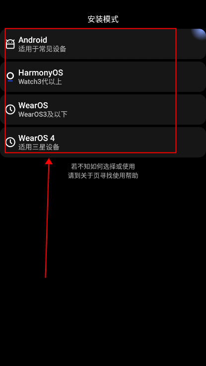 2、然后会让用户选择安装模式,请您根据您的手表操作系统选择对应;