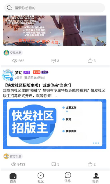 2、社区论坛交流:快发社区设有专属论坛区域,你可以在这里发布求助信息、分享使用心得、交流实用技巧,还能对帖子进行评论、点赞和收藏,轻松实现互动交流。