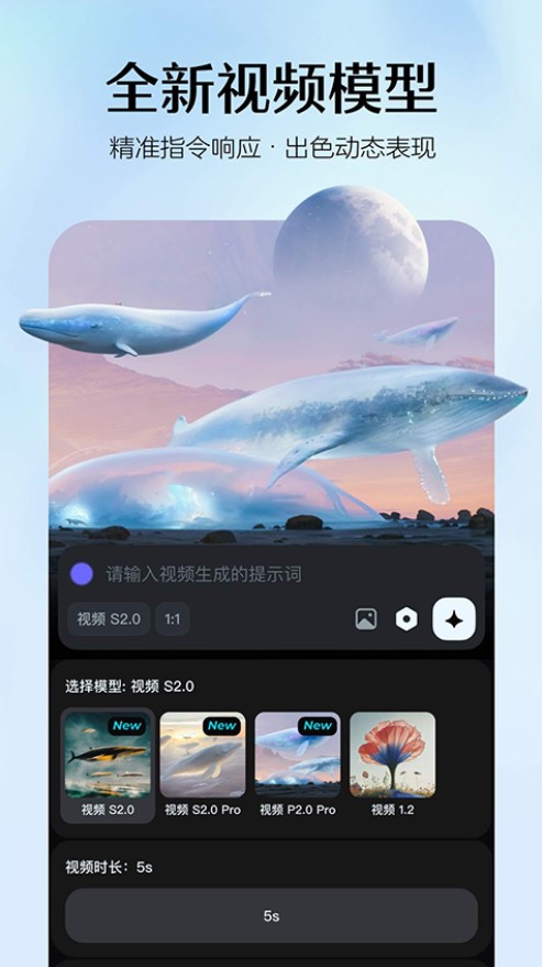 想要动态的表达?输入你的想法,即梦AI将生成视频,多轮尝试,得到满意的效果。