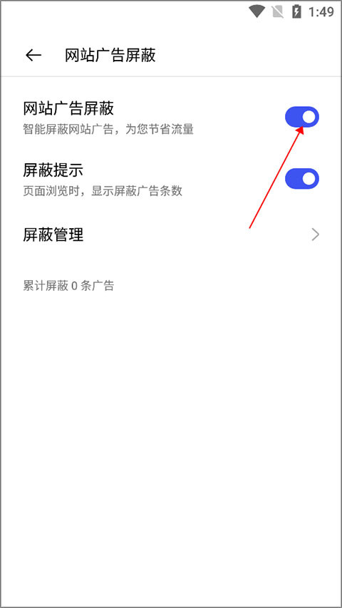 3、在设置界面,点击关闭自动进入阅读模式的开关即可了。