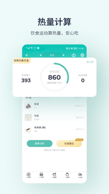 3、摄入和消耗,便捷记录、专业分析,高效管理