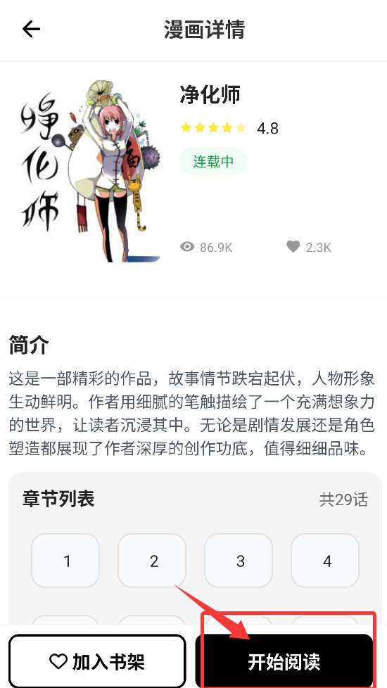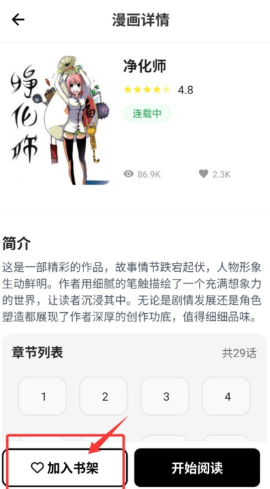 1、打开皮皮喵极速版后,您可通过加入书架功能收藏感兴趣的漫画作品,便于后续统一管理。