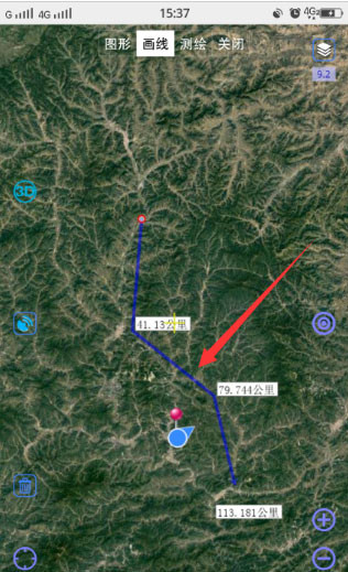 6、不区分图形框选、画线测距和测绘,工作完成后按住屏幕可以保存工作;