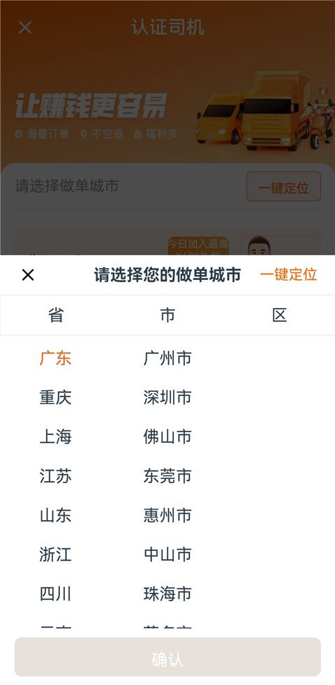 1、打开货拉拉司机版,登录后进入认证司机界面,选择跑车地点。