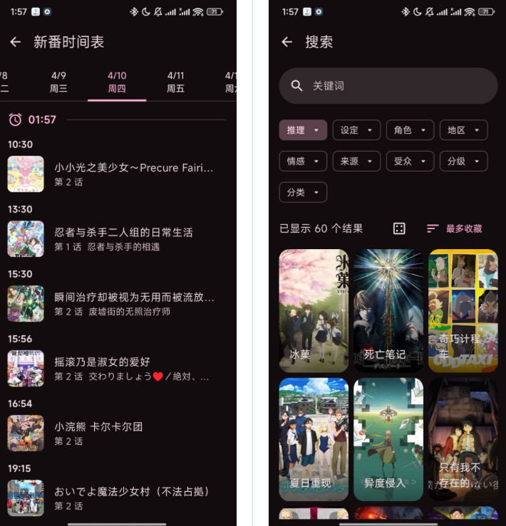 2、丰富的检索方式:新番时间表、标签搜索。